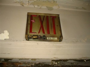 The Foyer’s upper level, the Foyer Mezzanine, is the balcony’s lounge. Like other movie palaces, the Boyd had furniture for patrons’ comfort. Metalwork was done in Art Deco patterns. The Foyer Mezzanine had marble drinking fountains, restrooms and elegant restroom lounges.