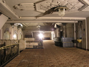 - Foyer Mezzanine 2004. Concession stand at right was put there in 1953. Original 1928 carpet found under it.
