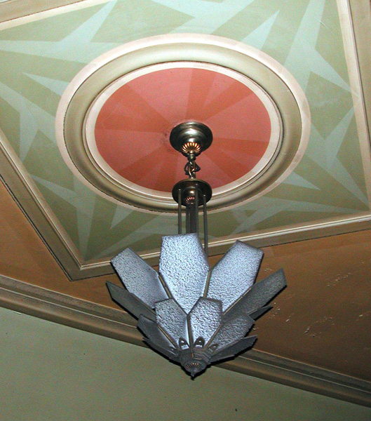 One of two such Art Deco upside down pyramid ceiling light fixtures.