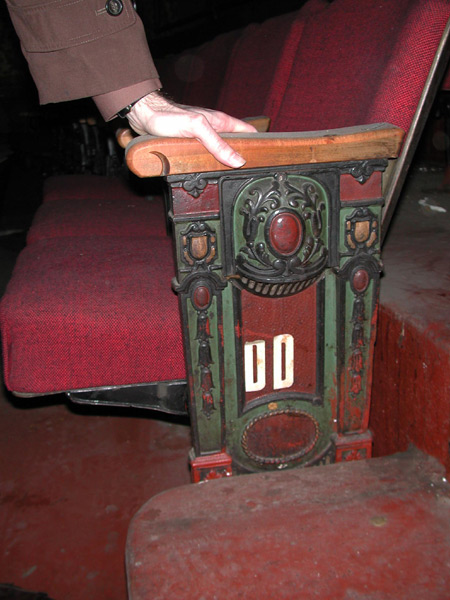 When the Boyd closed in 2002, many chairs from 1928 were still in the balcony, with their ornate ends, wood armrests, and original Art Deco upholstery hidden under 2 more recent layers.